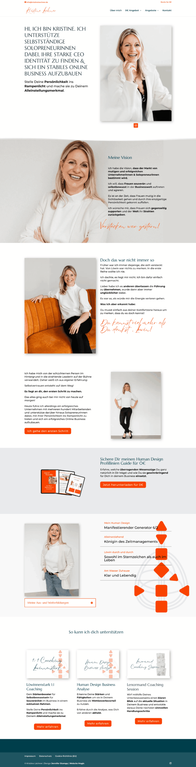 Mit meinem Mentoring und Coaching, unterstützt durch Human Design und Archetypen, helfe ich dir, alte Muster abzulegen und dein Business so zu strukturieren, dass du mit Leichtigkeit und Freude deinen wahren Weg gehen kannst – ganz ohne Überforderung und Technikfrust.